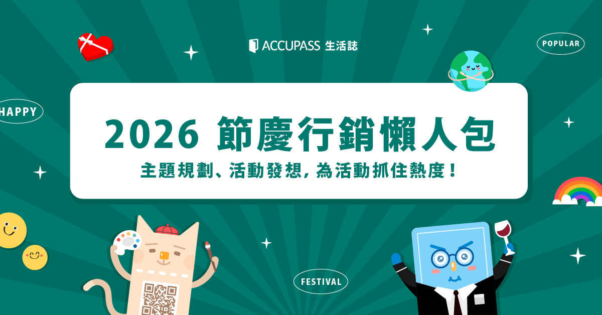 為協助品牌主辦方提早布局,ACCUPASS 特別整理出 2026 年全年度節慶行事曆,完整收錄各大重要節日與熱門行銷檔期,幫助你提前規劃行銷節奏、打造亮點活動。透過這份實用行事曆,主辦方不僅能搶佔市場先機,更能穩定提升品牌聲量與銷售表現,輕鬆掌握每一波節慶商機,放大全年行銷成效。