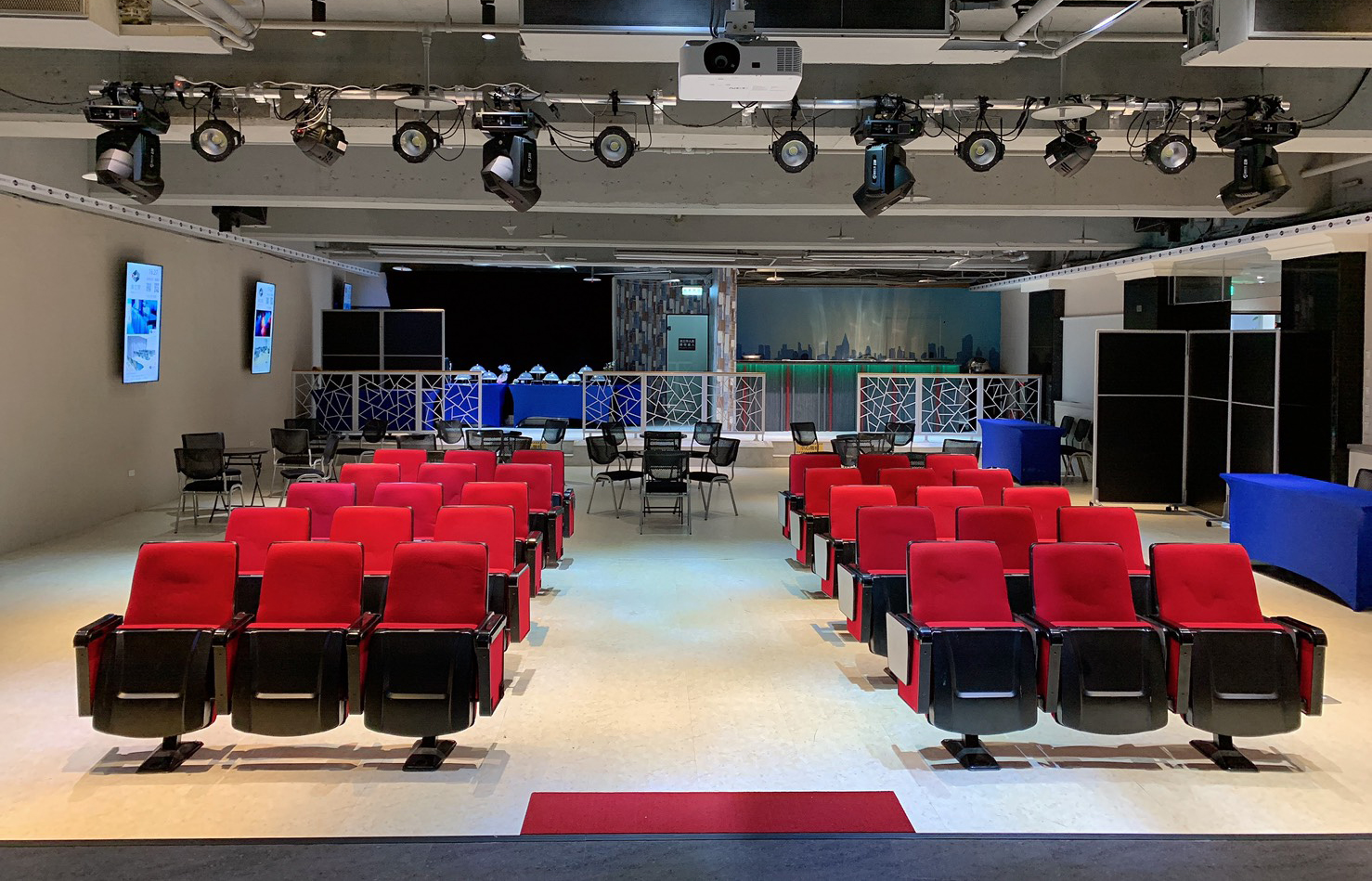 ▲如電影院般的劇場空間,非常適合舉辦音樂會、視聽放映、藝文展演等活動,後方還有吧檯還可提供飲料餐點等服務。