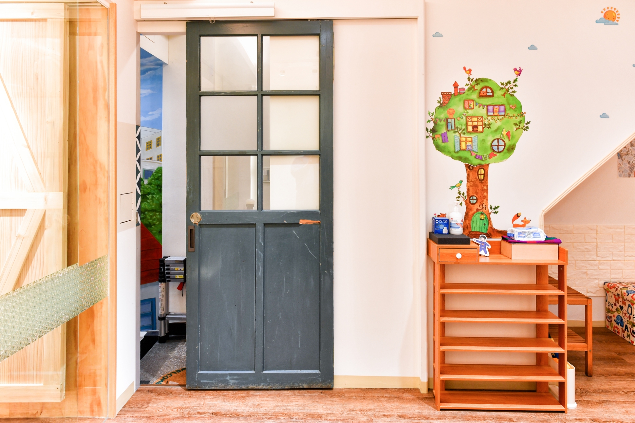 身為一家之主的爸比,用一槌一鋸一筆一畫,手工打造溫暖木質調裝潢。如同寬廣肩膀,堅定且強壯、溫暖且包容,撐起對於孩子的愛護,無微不至的保護,細心地抹去轉角處的突出,以圓滑弧度保護寶貝的安全。精選F1低甲醛愛樂可板材,以綠建築的方式,塑造安心活動的空間,思量裝潢設計的同時,也將老臺北的建築元素融入現代硬體中,將歷史懷舊感,淺移默化地印入孩子的視覺感官。